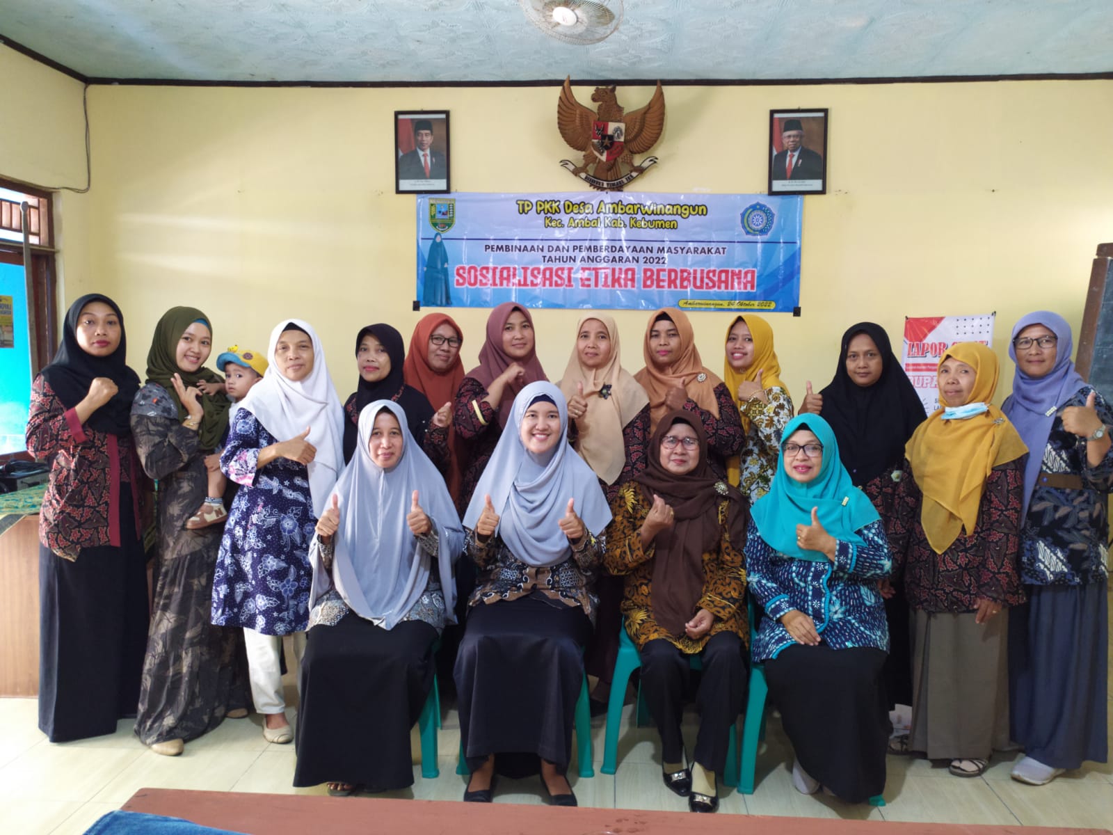 | 5 | Etika Berbusana | Senin, 24 Oktober 2022 | Senin, 24 Oktober 2022 | Semua anggota PKK | Menambah Pengetahuan Masyarakat Ambarwinangun untuk Berbusana yang sopan dan pantas karena harga diri seseorang dapat tercermin dari cara dia berbusana | TERLAKSANA | Pengaplikasian Berbusana yang sopan, pantas dan luwes | Berhasil Foto 1 Foto 2 |
