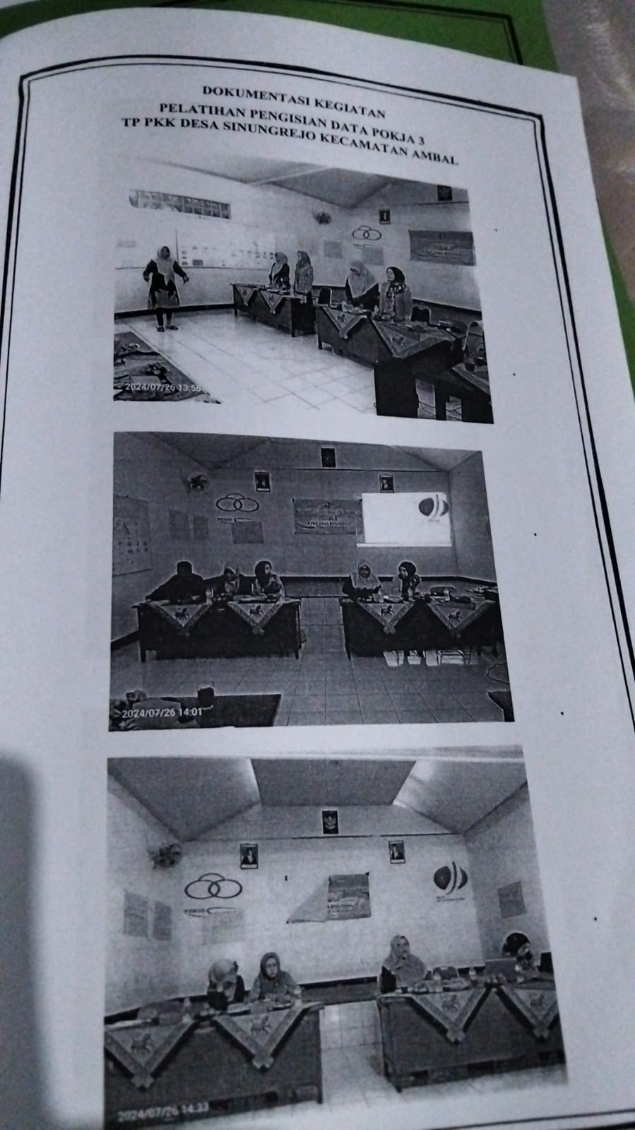 | 3 | PELATIHAN PENGISIAN DATA POKJA 3 | Jumat, 26 Juli 2024 | Jumat, 26 Juli 2024 | Ketua TP PKK,POKJA 3,KEPALA DESA,SEKRETARIS ,BENDAHARA | TAAT ADMINISTRASI POKJA 3 | TERLAKSANA | TERCAPAINYA PENGISIAN DATA POKJA 3 | berjalan lancar Foto 1 |
