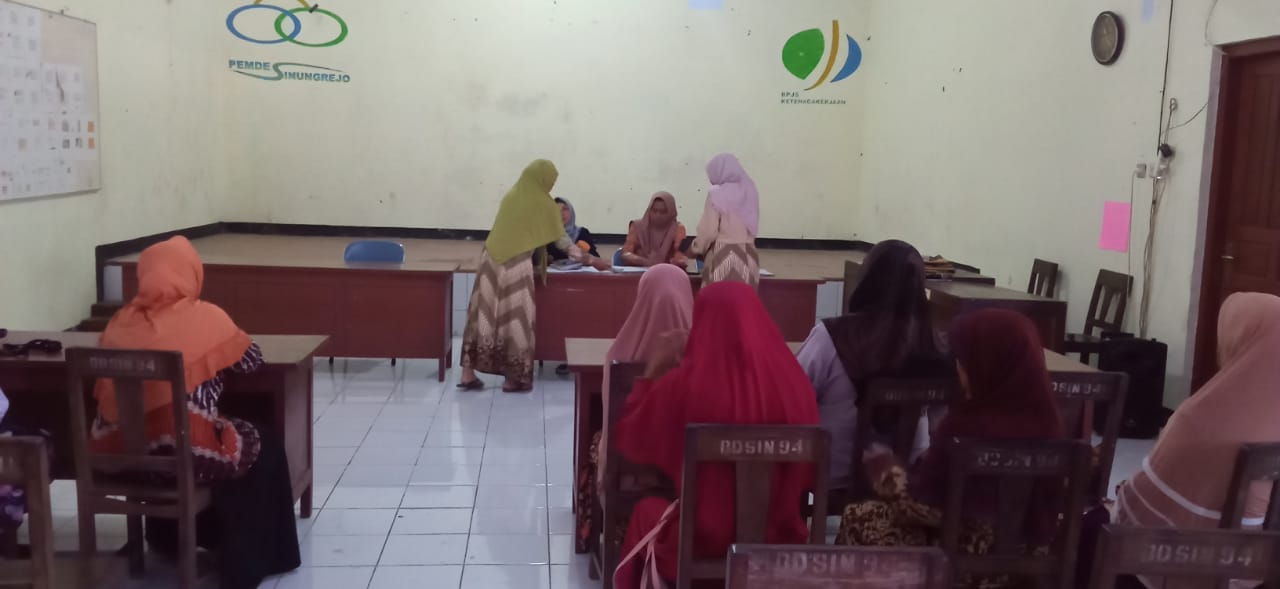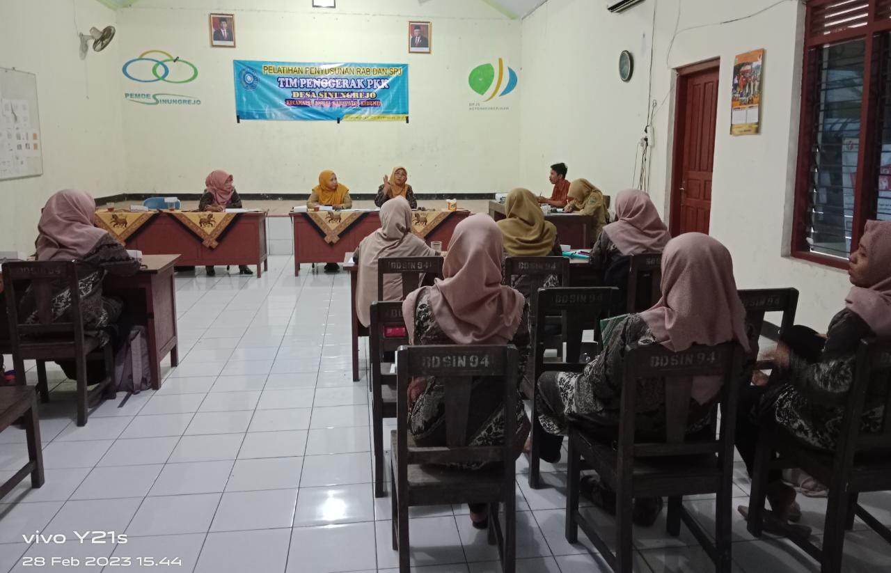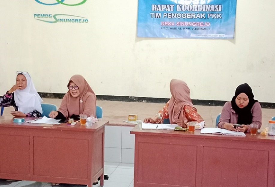 | 24 | PEMANTAPAN DAN PENINGKATAN FUNGSI KELEMBAGAAN PKK | Sabtu, 11 Maret 2023 | Sabtu, 11 Maret 2023 | TP PKK Desa Sinungrejo Seluruh Anggota PKK Desa Sinungrejo | MeningkatkanMewujudkan Disiplin Administrasi TP PKK Desa Sinungrejo Terutama Administrasi Sekretaris, bemdahara , pokja 1-4 | TERLAKSANA | Terwujudnya Disiplin Administrasi TP PKK Desa Sinungrejo Terutama Administrasi Sekretaris, bemdahara , pokja 1-4 | di dalam ruang |